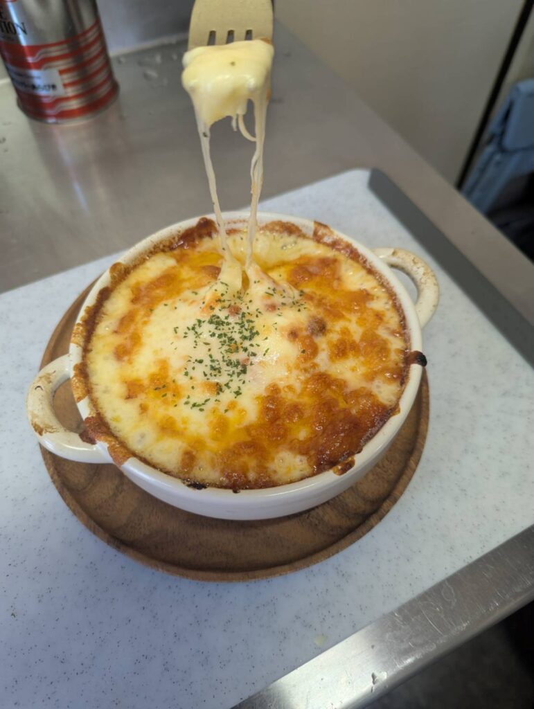 しっかり食べたい方はもちろん、シェアして楽しむこともできるため、グループでのランチやディナーにも最適。濃厚なチーズとミートソースの絶妙なバランスで、食事の満足感をしっかり味わえる一皿です。宮崎市で本格的なチーズたっぷり溶岩ミートスパゲティを楽しむなら、ぜひお試しください。