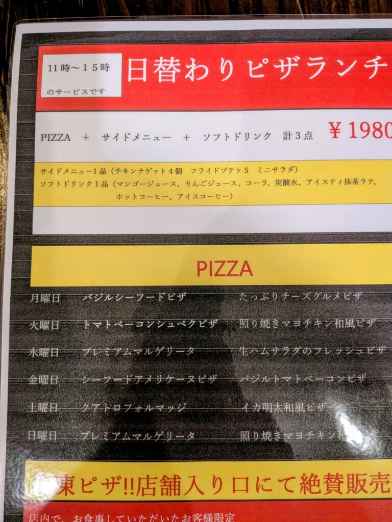日替わりピザランチ 1980円