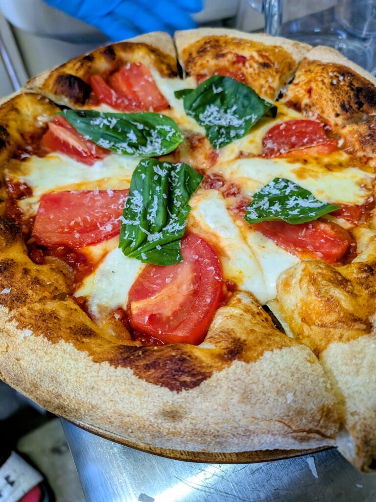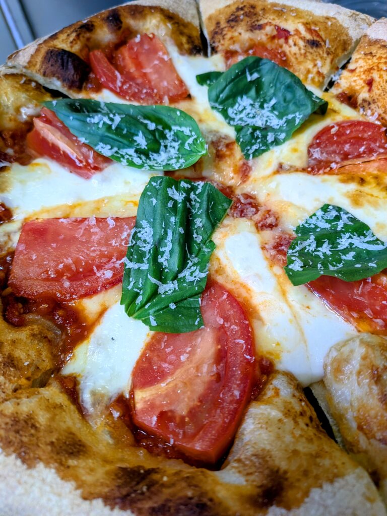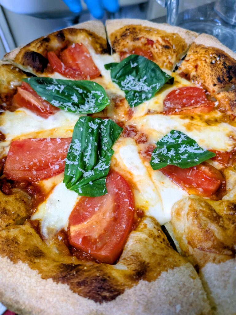 外は香ばしく、中はふんわり。 チーズやトマトの味を受け止めながら、決して主張しすぎない生地こそが、このピザの完成度を支えています。